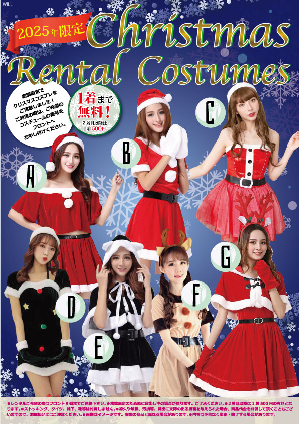 クリスマス・年末年始は一部ご利用料金・時間制が変更になります。詳しくは店舗までお問合せください。