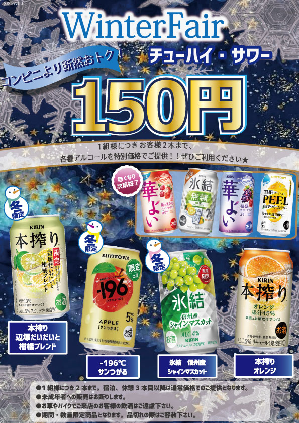 ★冬季限定チューハイ・サワー150円フェア第2弾スタート★
