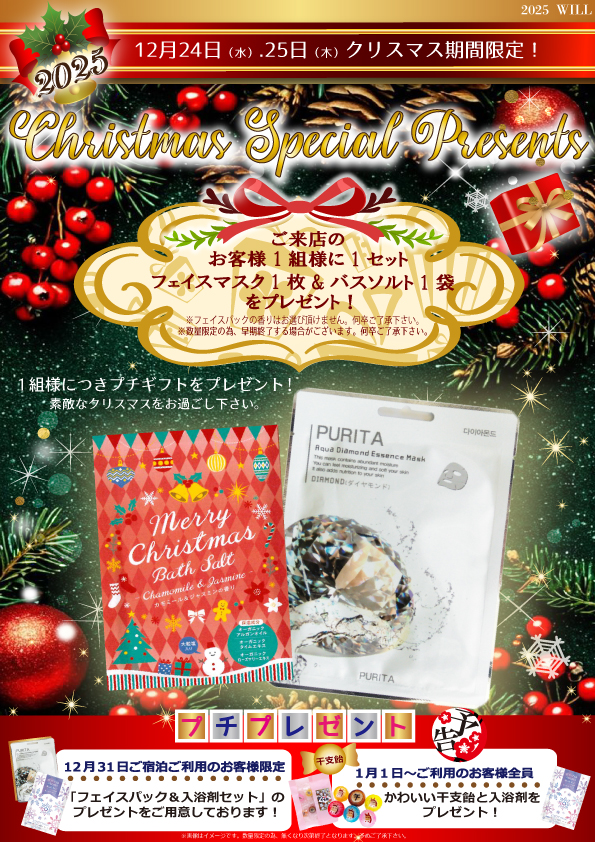 31日ご宿泊・年始ご利用のお客様へプチプレゼントのご用意も♪