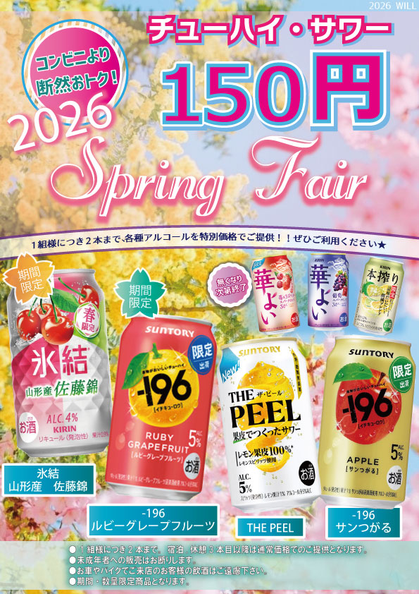 | 2026.3.3★春季限定チューハイ・サワー150円フェア★