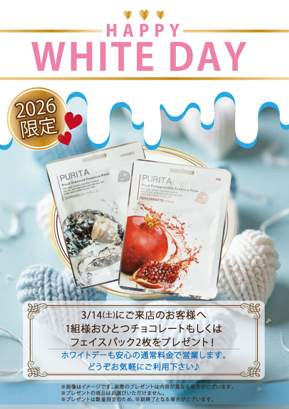 ホワイトデーも安心の通常料金にて営業致します♪